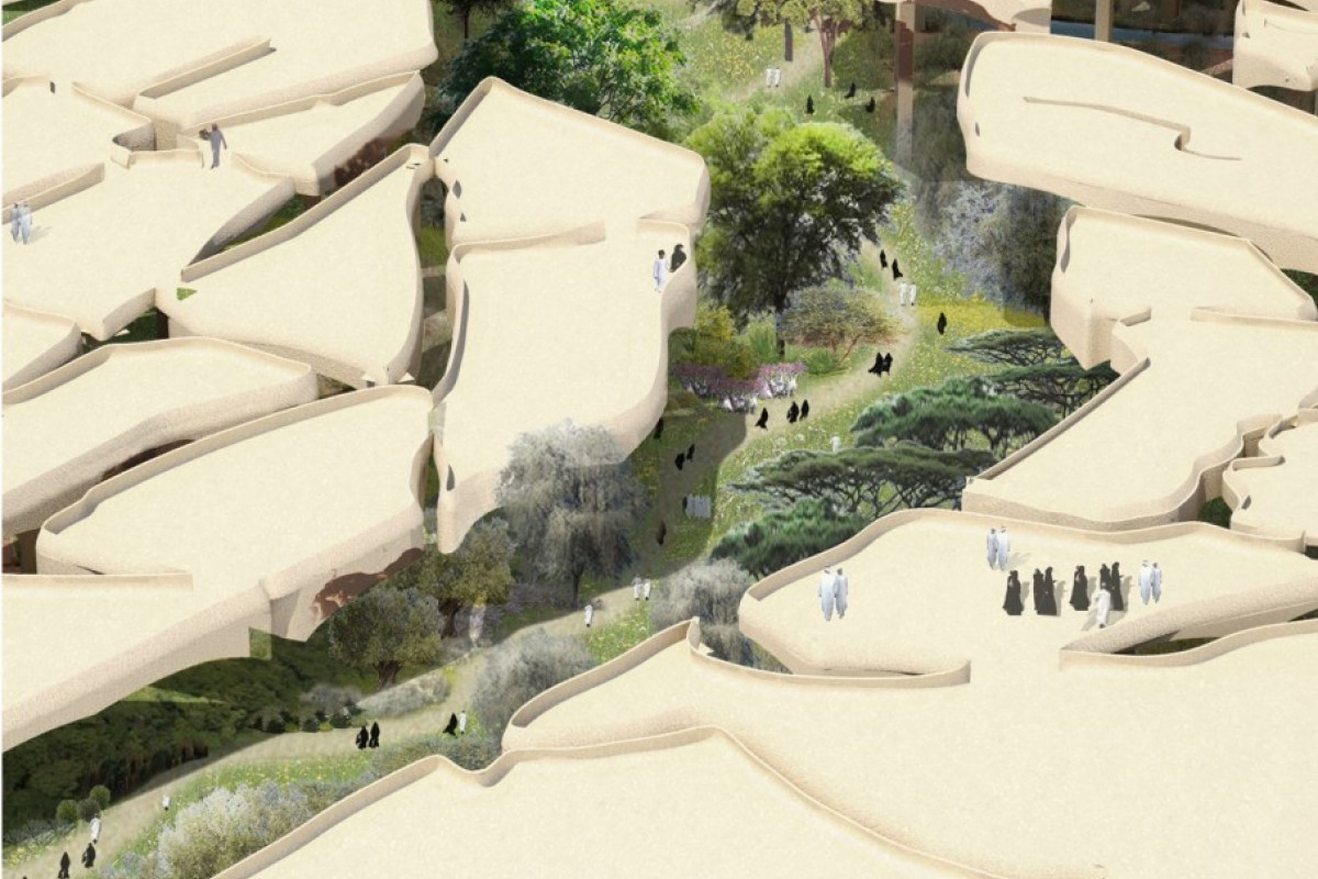 Парк Al Fayah Park, строительство которого начнется в этом году в Абу-Даби, будет оснащен навесами, создающими эффект растрескавшейся земли Аравийской пустыни.