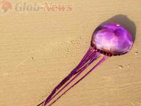 На одном из пляжей Австралии ученые обнаружили существо с достаточно длинными щупальцами, имеющее яркий цвет. Эксперты полагают, что данное существо относится к одному из видов медузы, но к какому именно им пока не удалось установить.