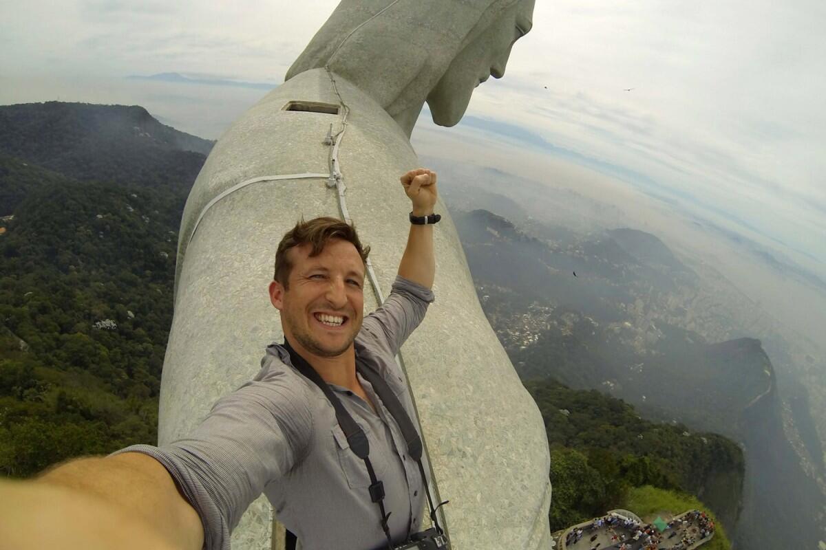 Покой знаменитой статуи Иисуса Христа с распростертыми руками на вершине горы Корковаду в Рио-де-Жанейро был нарушен путешественником, блогером и фотографом Ли Томпсоном. Он неожиданно для самого себя получил возможность взобраться на вершину памятника Христа-Искупителя и сделать сумасшедший селфшот. Для этого ему пришлось оформить специальное разрешение.