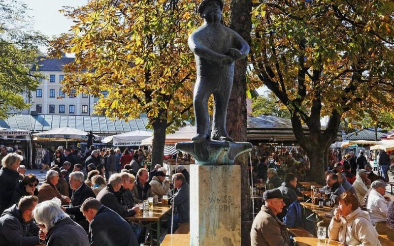 В отличие от традиционного воскресного рынка в Кашгаре, Виктуалиенмаркт работает каждый день, за исключением воскресенья и праздничных дней. Название этого места происходит от латинского victus — продукт, запас. Рынок занимает территорию, сравнимую по размерам с тремя футбольными полями, а возраст его насчитывает более 200 лет. В центре Виктуалиенмаркта расположен «Майский столб». Он служит главным ориентиром рынка и представляет собой ствол сосны, выкрашенный в белый и голубой цвета и украшенный флагами и ленточками. По разнообразию продукции же рынок с легкостью опередит современные супермаркеты.