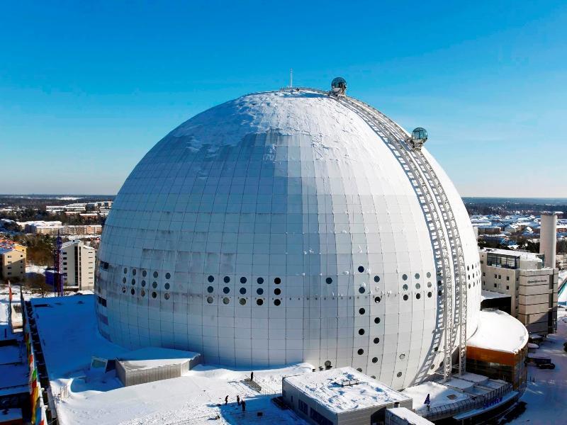 Несколько лет назад «Глобен-Арена» – самое крупное в мире сферическое строение, служащее одновременно спортивной площадкой и самым большим концерт-холлом Швеции, – стала еще более популярной среди туристов. При помощи промышленных альпинистов на внешней стороне здания были установлены специальные рельсы, по которым неспешно ползут прозрачные капсулы-гондолы. В течение 20 минут каждая из двух кабинок, рассчитанная на 16 пассажиров, совершает два оборота вокруг комплекса, ненадолго задерживаясь на 130-метровой высоте. Отсюда, с самой высокой точки здания, представляющего собой Солнце в шведской архитектурной модели Солнечной системы, раскиданной по всей стране, открывается прекрасная панорама Стокгольма. Стоимость поездки на гондоле, отправляющейся шесть раз в час, составляет 145 крон.