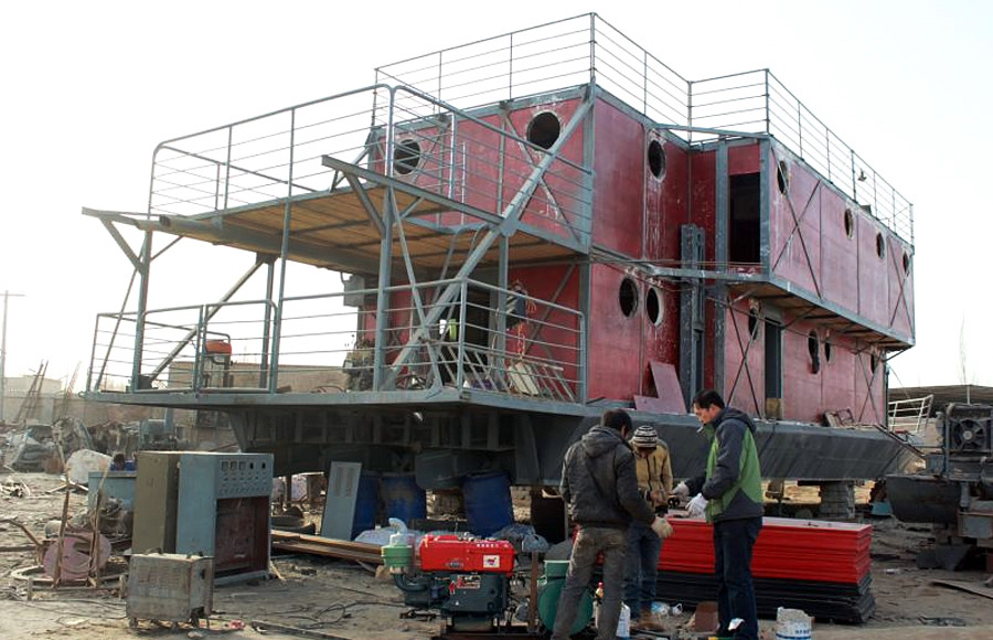 Лу Чжэнхай начал строительство в 2010 году, потратив на него все свои сбережения на сумму 160 тысяч долларов. Проект ковчега из стали и дерева он создал сам. Длина судна – почти 20 метров, вес – около 80 тонн