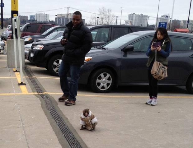 В воскресенье посетители одного из магазинов в Торонто заметили в помещении обезьяну, которая была одета в зимнее пальто.