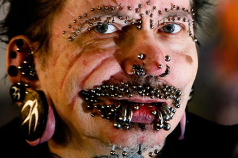 Рольф Бухгольц — чемпион по пирсингу среди мужчин, в 2012 году он попал в Книгу рекордов Гиннеса. Причем пирсингом немец не ограничился — он также сделал себе татуировку по всему телу, а в голову ему имплантировали искусственные рога. Как объяснил сам рекордсмен, пирсингом он увлекся уже в зрелые годы, пытаясь преодолеть кризис среднего возраста.