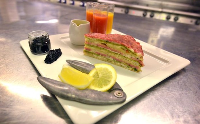 Блины подают с деликатесными продуктами: шотландский лобстер, икра белуги, трюфели. Ещё подают соус на основе розового шампанского Дом Периньон. Ресторан побил свой собственный ценовой рекорд в 240 долларов в 2009 году за порцию блинчиков, которая была самой дорогой на то время. Сами блины приготовлены с добавлением тертого чеснока, сока свеклы и шампанского Дом Периньон.