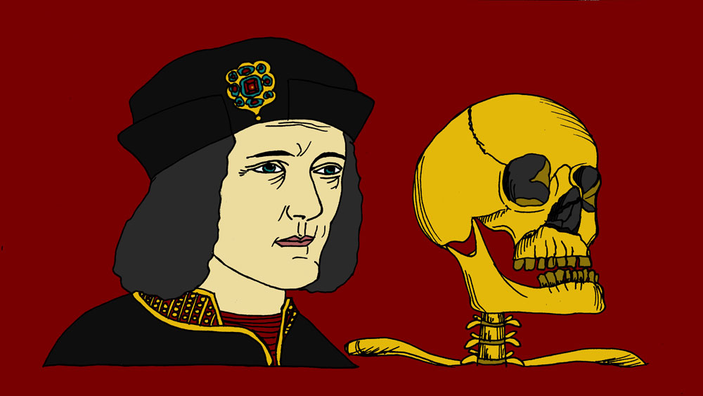 Справка. Ричард III (1452-1485), последний английский король из династии Плантагенетов, пробыл на троне с 1483 по 1485 год. Он погиб в битве при Босфорте, сражаясь с претендентом на престол — Генрихом Тюдором (будущим королем Генрихом VII). Останки Ричарда III были обнаружены осенью 2012 года под автостоянкой в Лестере, расположенной на месте бывшего францисканского монастыря.