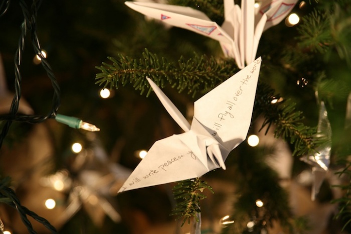 В сообщении сказано, что, кроме обычных поздравительных открыток, на новогоднем дереве оставляют записки, адресованные Деду Морозу и написанные на разных языках.