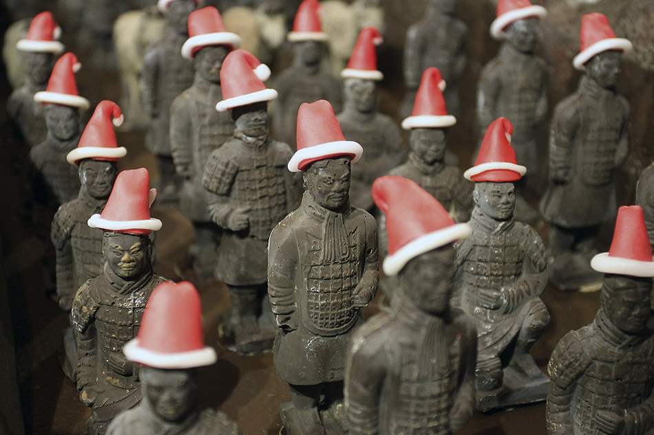 В преддверии празднования Рождества в холле одного из отеля города Сиань выставлены миниатюрные шоколадные терракотовые воины в шапках Санта-Клауса. В общей сложности за 10 дней кондитеры сделали 300 копий терракотовых воинов, для чего потребовалось 100 кг шоколада.