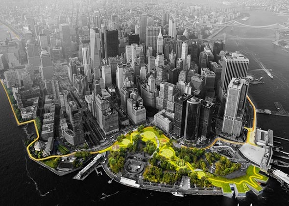 Хэнк Овинк, учредивший проект Rebuild by Design, в котором дизайнеры, архитекторы и инженеры предлагали свои идеи по созданию более современной и надежной инфраструктуры побережья, полагался на свой опыт работы в Голландии. Работая там, он выяснил, что жителям этой страны регулярно приходится иметь дело с наводнениями, и поэтому они спасаются от них следующим образом: укрепляют береговую линию. Именно эту инициативу Овинк и перенес в Нью-Йорк. В результате в конкурсе Rebuild by Design победил проект от компании Big U. Этот проект являет собой массивную стену длиной в 18 км: конструкция должна охватывать южную часть Манхэттена, закрывая от разыгравшейся стихии парки, общественные места и улицы. Властям Нью-Йорка проект стены настолько пришелся по душе, что они выделили на его реализацию $ 335 млн.