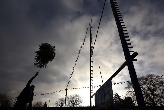 В Англии состоялись соревнования по метанию новогодних елок (ФОТО)