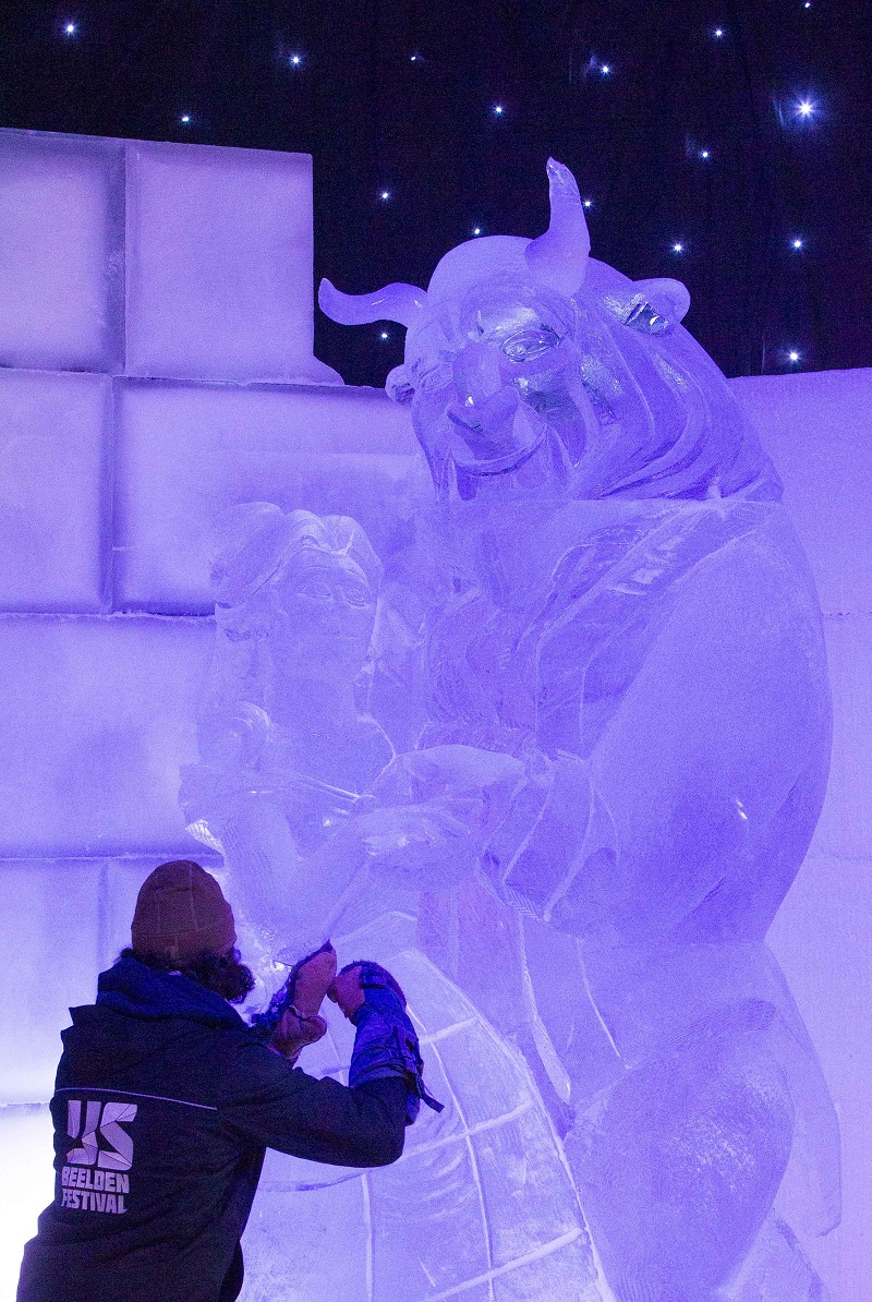 11. Скульптор вырезает ледяную скульптуру во время ежегодного фестиваля ледяных скульптур в бельгийском Антверпене. (© Yves Herman / Reuters)