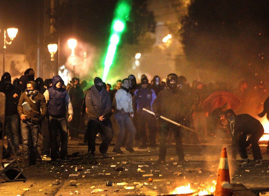 Протестующие бросали «коктейли Молотова», разбивали витрины и переворачивали автомобили.