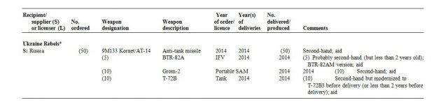 Данные обнародовали в Институте исследований проблем мира (SIPRI) в Стокгольме. Информация попала в базу организации.