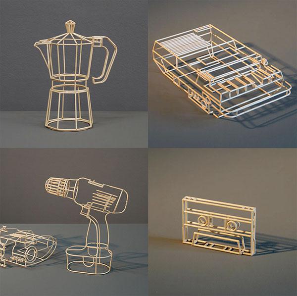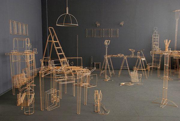 Серия экспериментальных работ художника носит название Zeichnungen im Raum («Живопись в пространстве»). Стул, компьютер, люстра, скрипка словно теряют привычную внешнюю оболочку, поэтому зритель видит лишь каркас вещей.