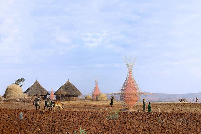 Итальянские архитекторы Arturo Vittori и Andreas Vogler разработали инновационный проект под названием Water Warka. Он представляет собой своеобразную башню, при помощи которой можно получать до 100 литров воды в день. Особенно актуально применение этой установки в самых засушливых районах Африки, где снабжение водой местного населения является большой проблемой.