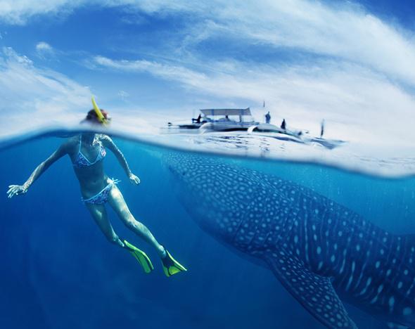 Когда смутный силуэт китовой акулы впервые попадает в поле твоего зрения, по телу пробегает дрожь, просыпается на доли секунд животный страх — пасть гиганта широко раскрыта, он движется тебе навстречу. Но вот вы уже плывете бок о бок, будто старые приятели, и между вами метр-полтора, солнце бликами играет на стальной шкуре. Страха нет, наступает эйфория, ты забываешь дышать. Еще несколько мгновений, и акула прощается с тобой: она быстрее человека, океан — ее стихия, а ты лишь турист, которого привезли на увлекательный аттракцион.
