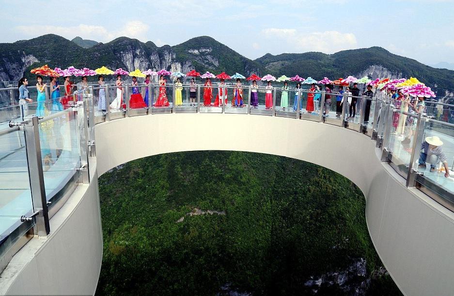 Китайский «аттракцион» стал самым большим в мире консольным мостом, обойдя в списке «Небесную тропу» над Большим каньоном. Смотровая площадка Skywalk в штате Аризона открылась весной 2007 года. Тогда первым по коридору с прозрачным дном прошел астронавт Базз Олдрин — второй человек, ступивший на поверхность Луны. Как и свой китайский собрат, мост построен с большим запасом прочности и сможет выдержать землетрясение до 8 баллов по шкале Рихтера.