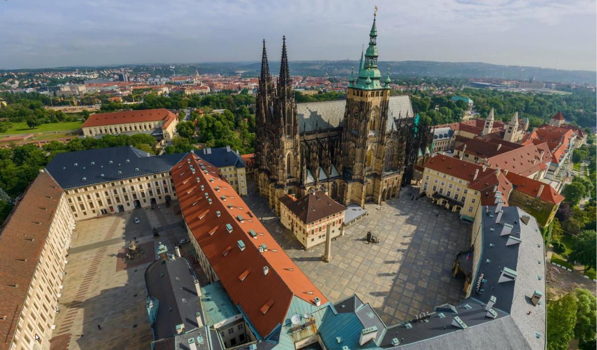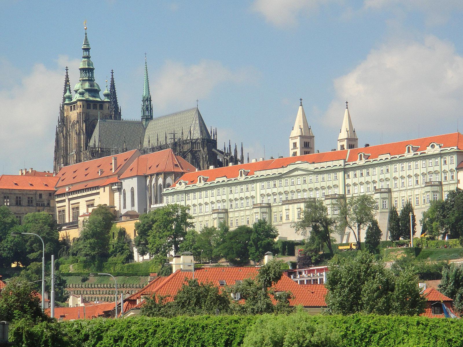 Он состоит из нескольких зданий-дворцов, церквей, башен и домов, - построенных в разное время. В Градчанах похоронен покровитель Чехии Святой Вацлав. Это любимый всеми чехами князь, распространявший в стране христианство, жил в X в. и был убит язычниками.Пражский Град стоит на холме над рекой Влтава, возвышаясь над остальной частью чешской столицы.В средние века это была деревянная крепость. Постройка собора Святого Витта, начатая тысячу лет назад, завершилась только в XX в.