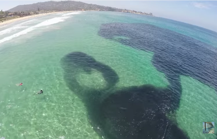 С высоты размеры этого темного пятна немного пугают. Всё-таки ужасы морских глубин всегда нагоняли на человека страх, и даже на мелководье может таиться много такого, с чем лучше не сталкиваться. На нефть мало похоже, ведь та всегда плавает на поверхности воды. Так менять форму мало какое морское чудище сможет, водоросли не смогли бы двигаться сами по себе, с корабельными обломками та же история… Только когда камера приближается к пятну, становится ясно, что это не монстр, а огромнейший косяк рыбы. Именно такие зрелища позволяют нам хоть немного осознать всё величие природы!