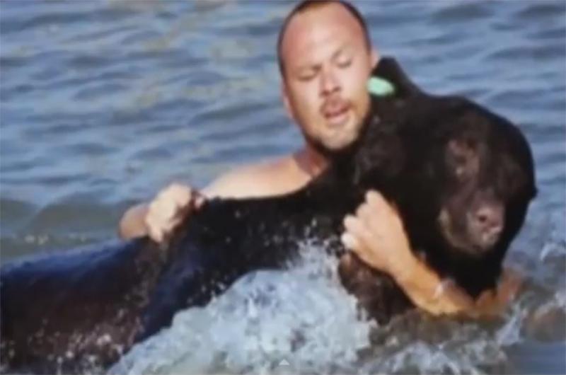 Американец спас тонущего медведя (ВИДЕО)