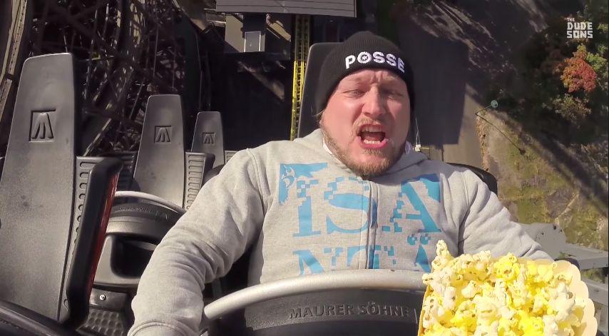35-летний раздолбай решил доказать хозяевам одного из парка развлечений, что нет ничего плохого в том, чтобы попробовать полакомиться попкорном (или другими подобными снэками) на американских горках. Что из этого получилось? Смотрим на видео, которое представлено ниже.