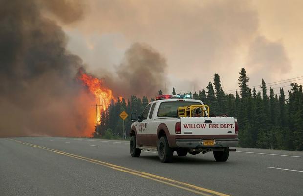 Специалисты обеспокоены тем, что погода способствует распространению неконтролируемого пламени: на Аляске сейчас низкая влажность, сильная жара и порывистый ветер.