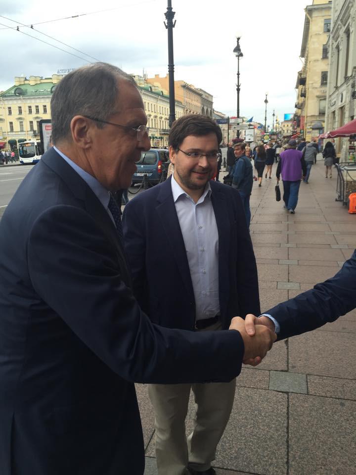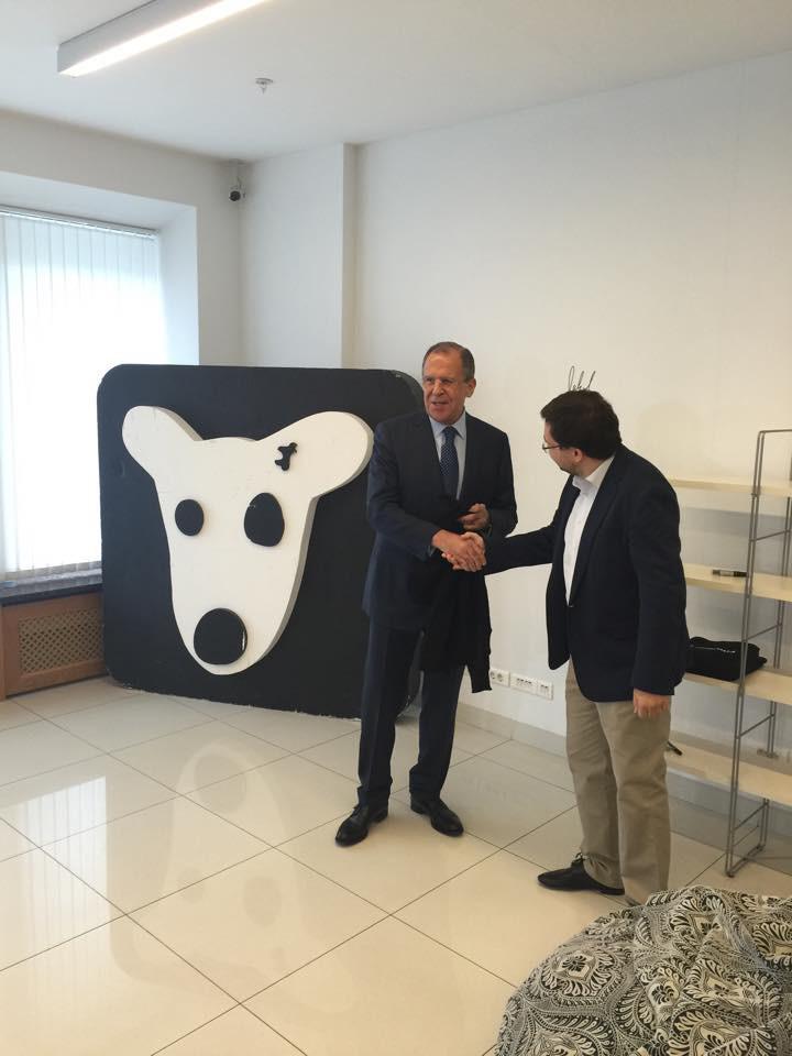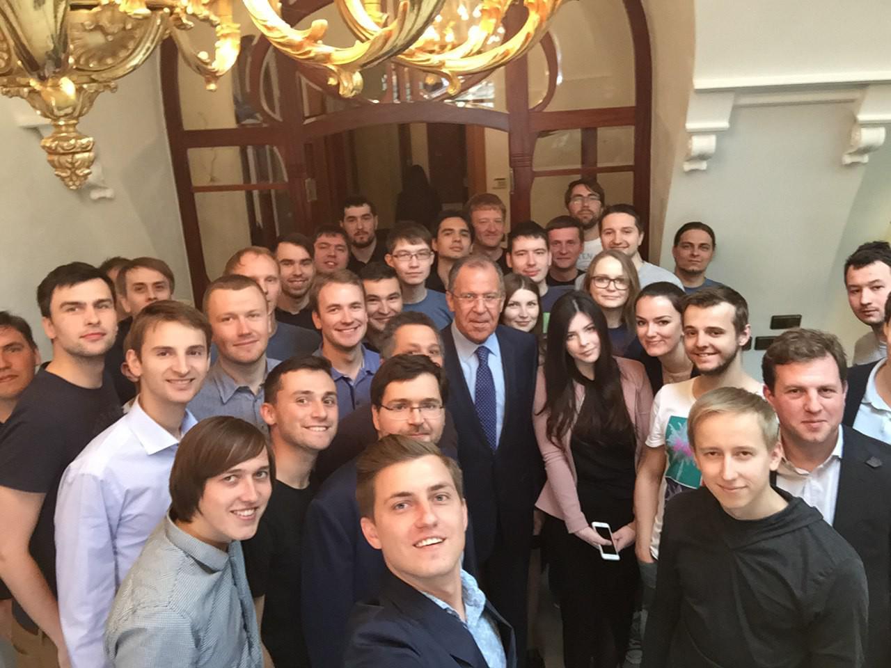 Сергей Лавров посетил офис «ВКонтакте» в рамках проходящего в Санкт-Петербурге Международного экономического форума. Министр иностранных дел пообщался с пресс-секретарём соцсети Георгием Лобушкиным и её генеральным директором Борисом Добродеевым, оставил автограф на стене, посетил купол дома «Зингера», сделал совместное селфи с сотрудниками компании и получил в подарок фирменную толстовку со ссылкой на официальную страницу МИДа во «ВКонтакте».