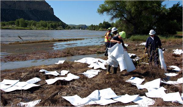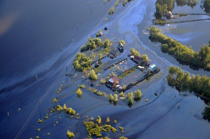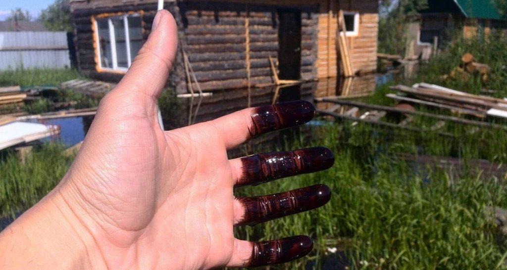 Разлив нефти в условиях наводнения привел к экологической катастрофе. Площадь разлива в настоящее время превышает 10 гектар.