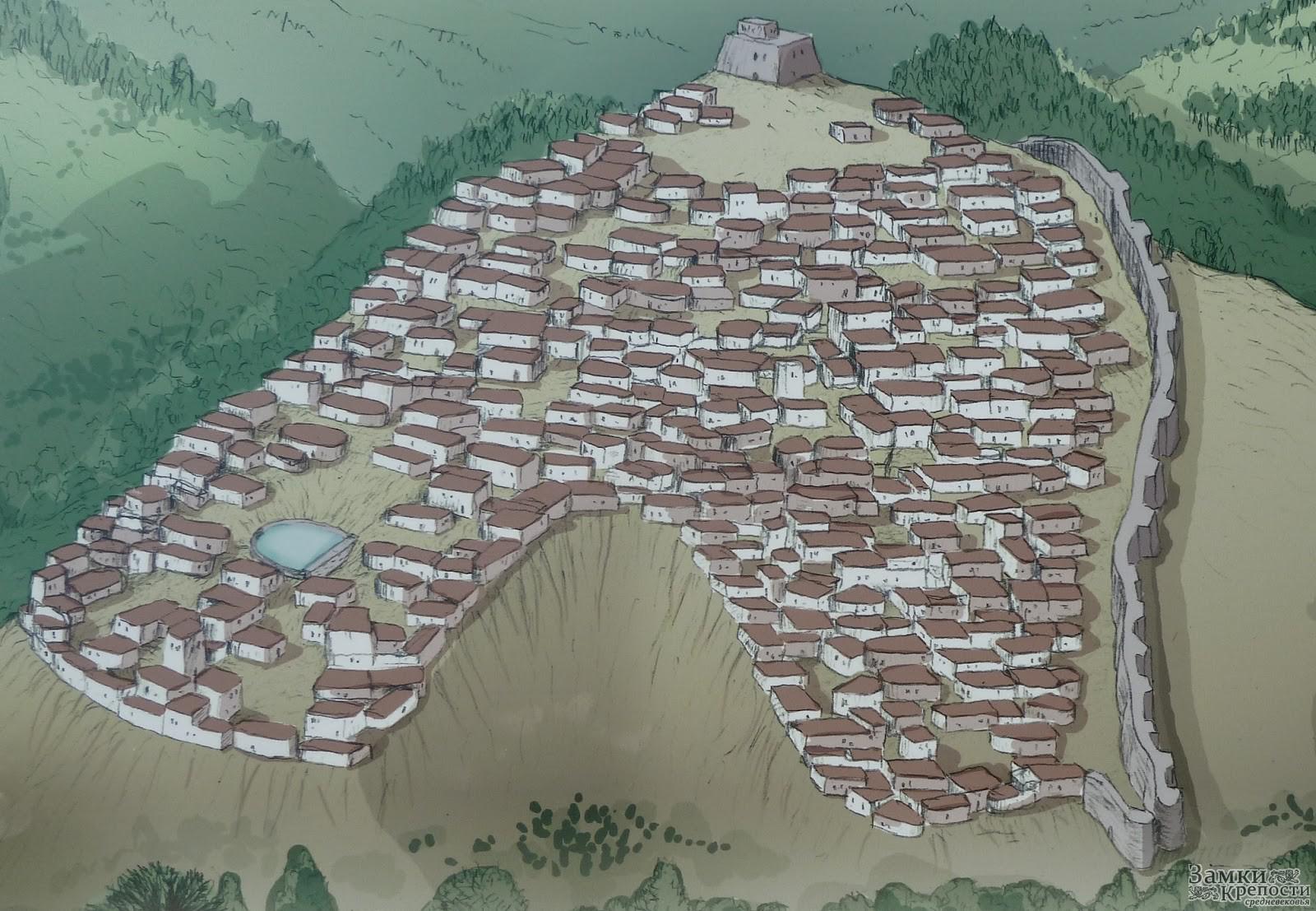 Примером могут служить исключительной прочности конструкции стен, выстроенные на известковом растворе. Большого количества труда требовала планировка оборонительной структуры крепости.