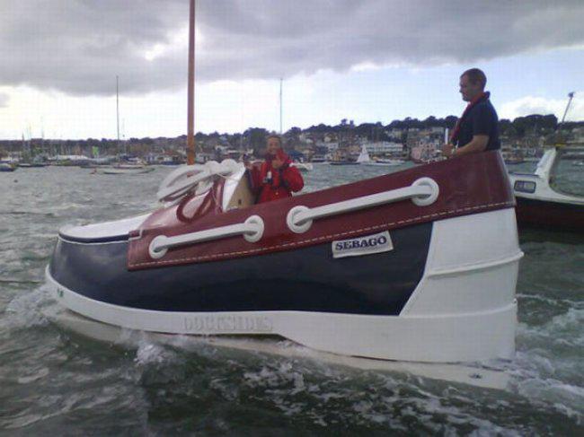 Вполне счастливым чувствует себя, прогуливаясь по большой воде на своей лодке, и французский дизайнер Жюльен Бертие. Хотя со стороны создаётся полная иллюзия того, что этот человек терпит кораблекрушение.