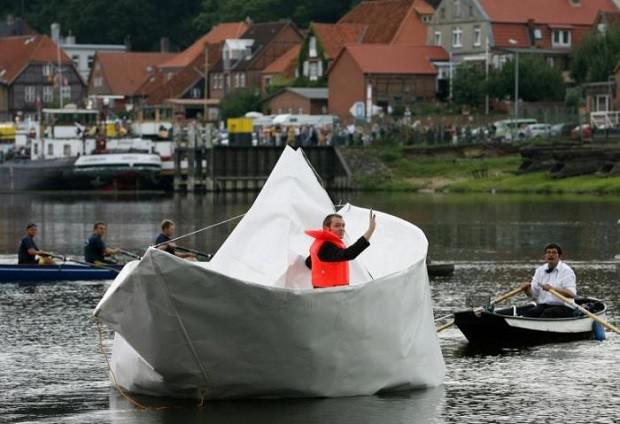 К примеру, британский художник и скульптор Френк Боэлтер создал оригинальную лодку в виде традиционного детского бумажного кораблика. Чтобы лодка смогла выдержать вес взрослого человека и не затонуть сразу же после спуска на воду, он сделал её из 170 квадратных метров плотной бумаги для упаковок «Тетра Пак».