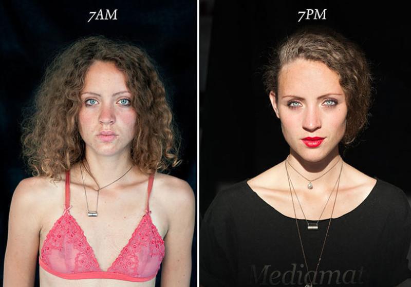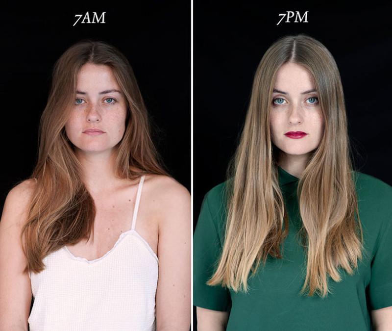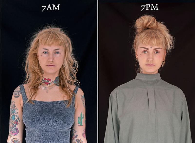 Именно эту разницу выбрала бельгийский фотограф Барбара Ивейнс главной темой своего фотопроекта «7 утра — 7 вечера». Барбара захотела показать происходящую с человеком метаморфозу за 24 часа. Странно, но мы, к примеру, заметили, что некоторые люди выглядят гораздо лучше, когда только встали с постели. А вы что думаете?