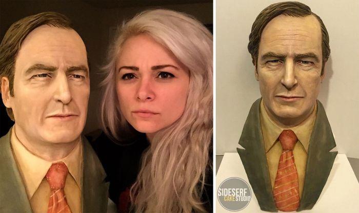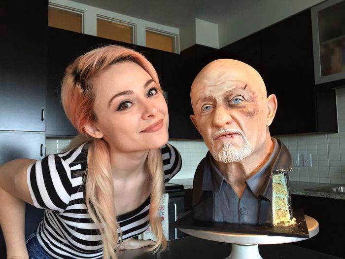 Одной из самых известных работ Натали стал торт в виде бюста Майка Эрмантраута, героя сериалов «Во все тяжкие». Эта работа прославила девушку в сети и вдохновила на создание других не менее впечатляющих тортов.