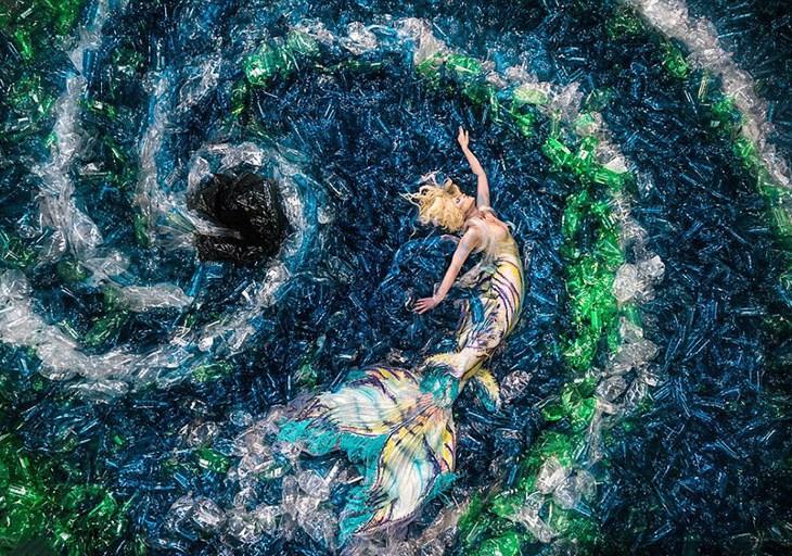 Русалки погрузились в океан пластиковых бутылок, чтобы показать загрязненность окружающей среды (ВИДЕО)