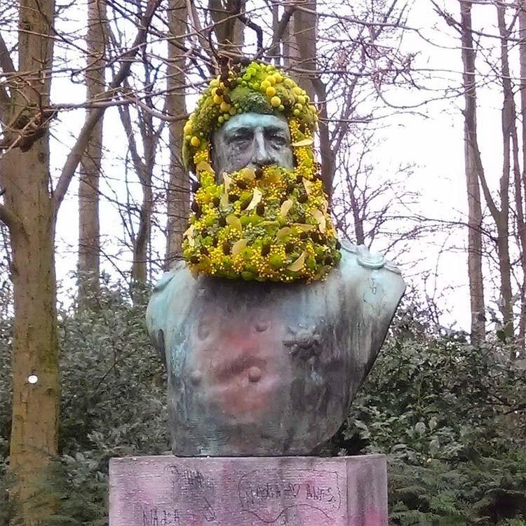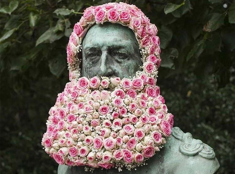 Флорист украшает заброшенные памятники цветочными бородами и головными уборами (ФОТО)