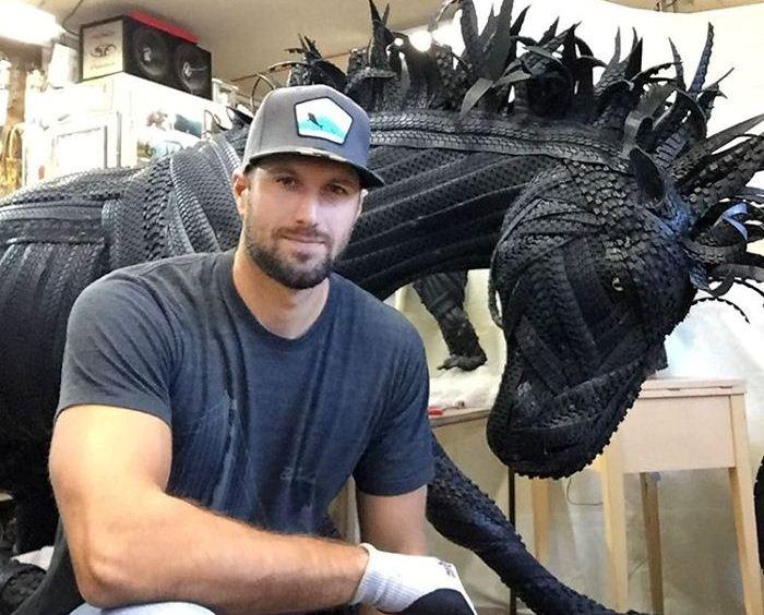 В каждой скульптуре Блейк старается анатомически правильно разместить листы и обрезки шин, чтобы показать мышцы животных.