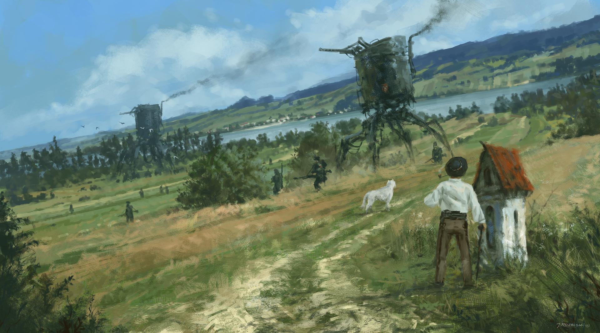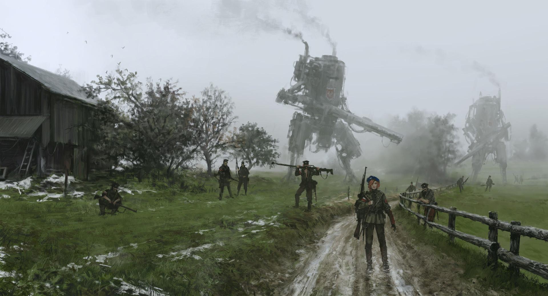 Первая мировая война подстегнула научный прогресс, в результате чего было создано невиданное оружие в виде гигантских роботов. Соседство таких необычных боевых машин с крестьянами на пашне или лесорубами на опушке, смотрится весьма впечатляюще.