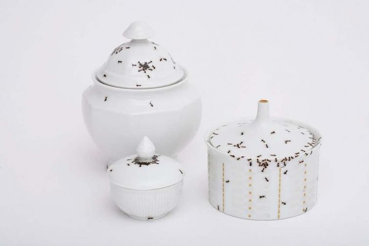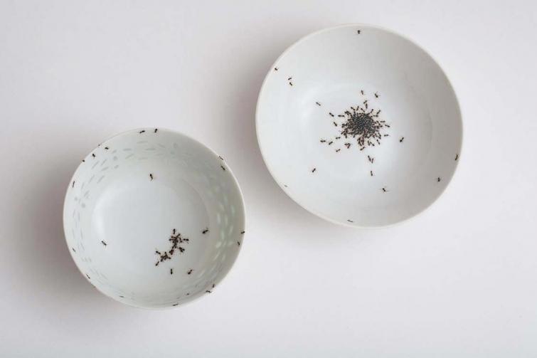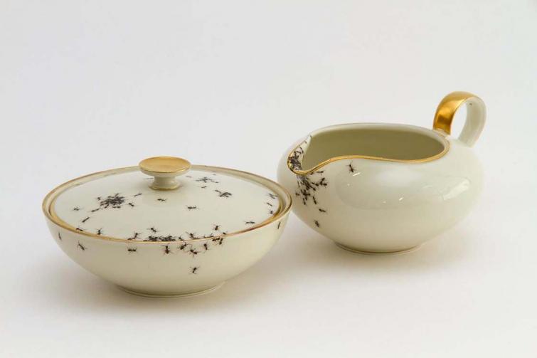 Вручную муравья за муравьём Эвелин добавляла на посуду, делая их такими реалистичными, что даже становится жутко при взгляде на этот сервиз. Кропотливая и очень крутая работа!