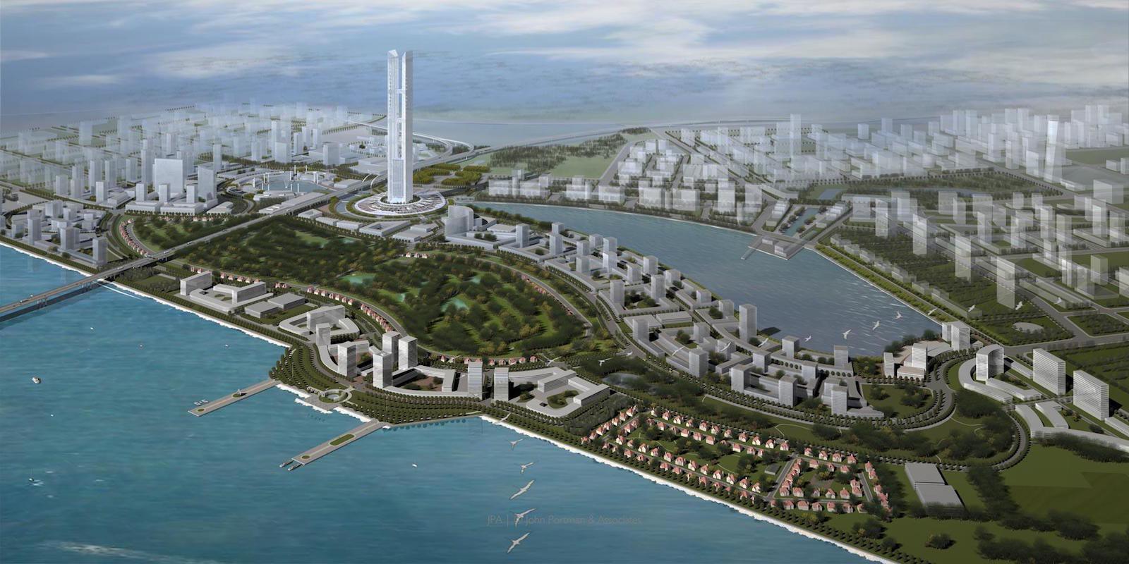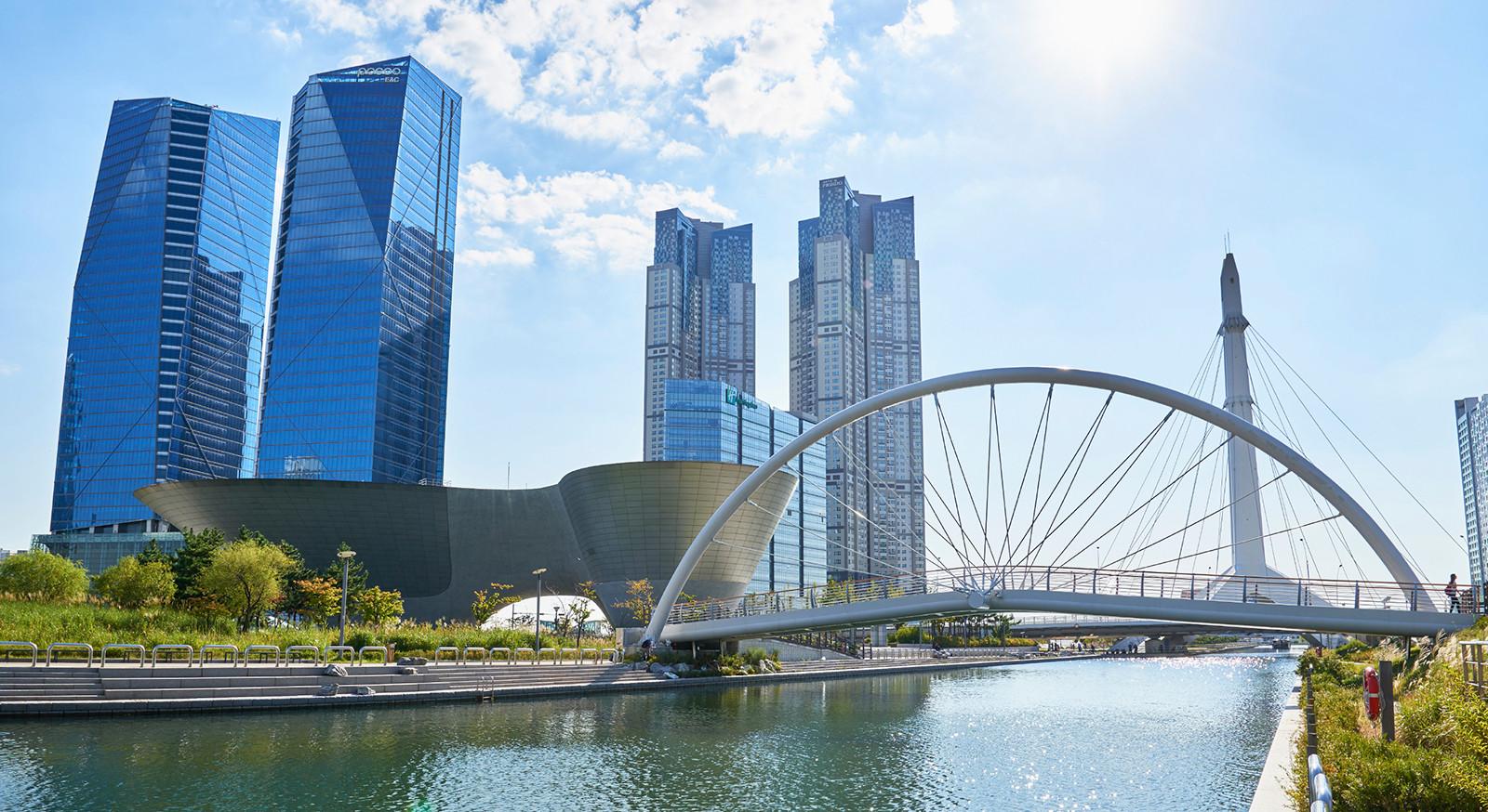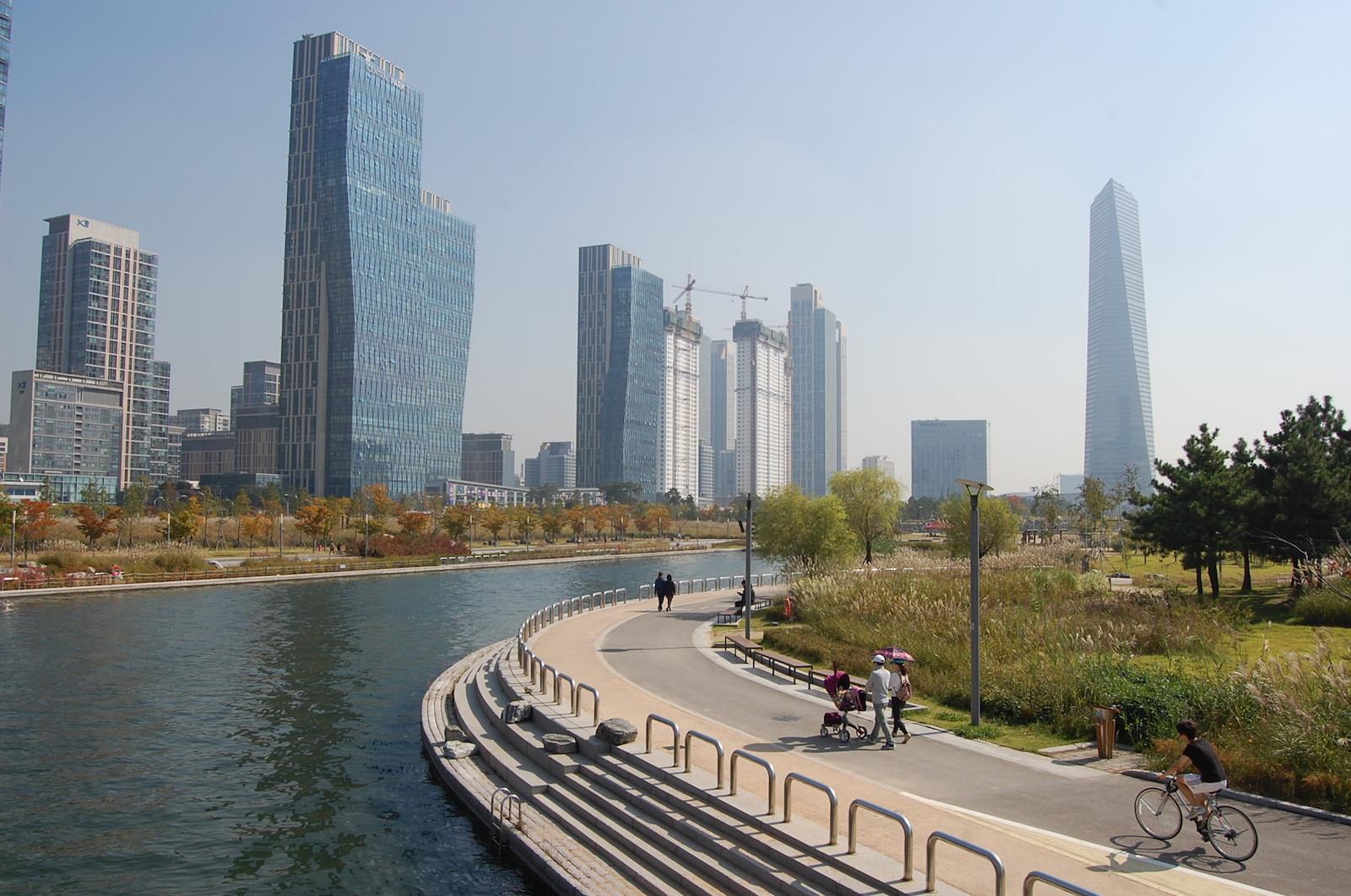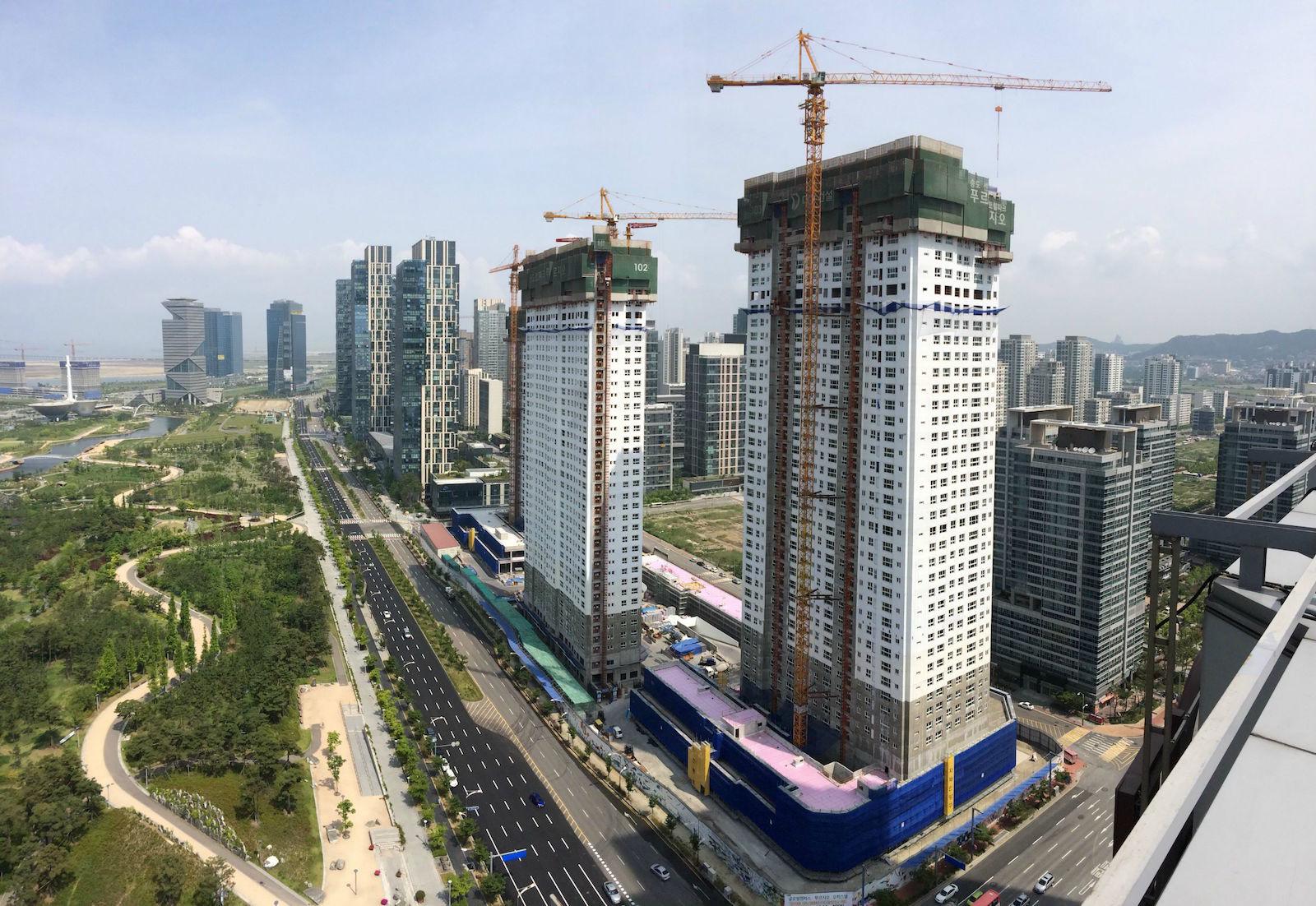 Богатые частные компании одна за другой начали вкладывать деньги в строительство подобных проектов. Не стал исключением и гигант южнокорейской промышленности Daewoo, задумавший построить самый умный город в мире на большом искусственном острове. Но строительство продлилось недолго, из-за банкротства компании его пришлось заморозить на самом начальном этапе. А в 1999 году проект выкупили американская Gale International и южнокорейская POSCO E&C. А позже, в качестве инвестора присоединился и банковский холдинг Morgan Stanley.