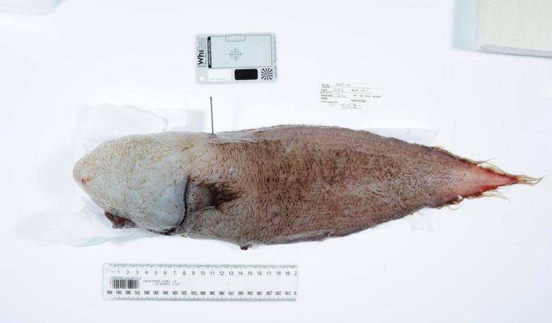 «Рыбу без лица» впервые выловил экипаж британского парусно-парового корвета «Челленджер» в ходе первой океанографической экспедиции 1872–76 годов. Находка была сделана в 1873 году в Коралловом море недалеко от побережья Папуа — Новой Гвинеи. С тех пор подобные существа ученым не попадались.