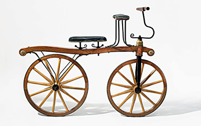 Прототип велосипеда был деревянным и без педалей (2). Изобрел его в XIX веке немецкий барон Карл фон Дрез