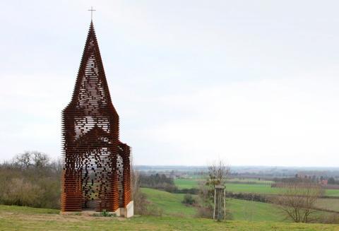 Это конструкция из стальных деталей, соединённых таким образом, что она меняет внешний вид в зависимости от ракурса. С одной точки зрения церковь выглядит как традиционное здание, характерное для нидерландской архитектуры. С другой — она как будто становится прозрачной, пропуская свет через множество отверстий, из которых состоят её стены.