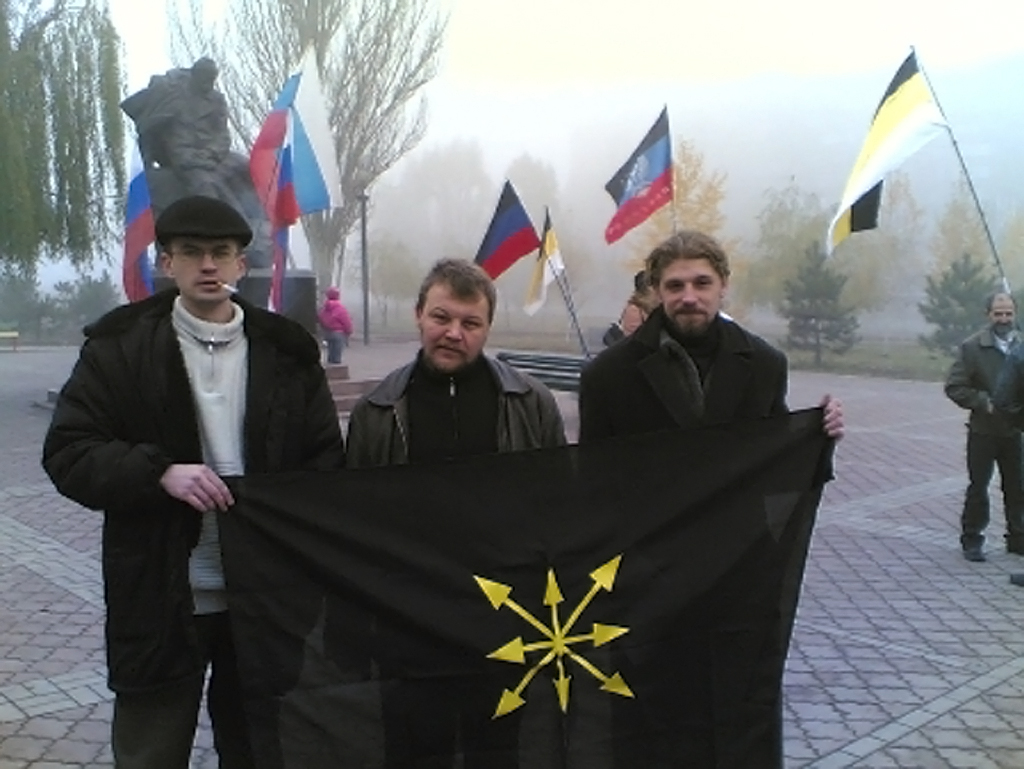 Факт третий. На боевое знамя «новороссов» вопреки всем законам геральдики присобачен герб, который нарисовал для конкурса на символ Новороссии один интересный человек – политолог Михаил Павлив.