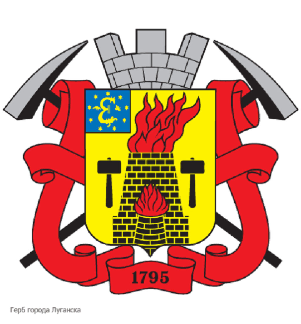 На флаге герб: полностью скопированный с российского символа двуглавый орел (с коронами, о которых выше), на груди которого прицеплен украинский герб города Луганска с одной очень важной и смешной правкой: с него пропал личный вензель российской императрицы Екатерины II.