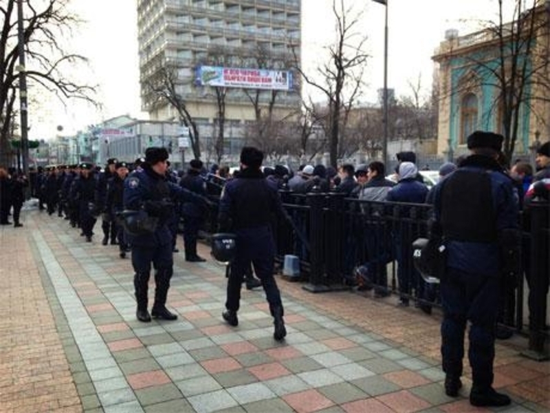Пропускают только сотрудников Кабмина по удостоверениям. На Арсенальной два поста ГАИ перекрыли движение автомобилей, у Дома офицеров оппозиция выставила баррикады, подогнали самосвал и автобус. За Домом офицеров ул. Грушевского в сторону парламента перекрыта «Беркутом» (около 100 бойцов), спецназовцы стоят в два ряда на улице, также стоят вдоль ограды Мариинского парка. У здания Рады продолжается митинг ПР. Там около 1000 человек, тоже охраняются «Беркутом». К Кабмину пройти по ул.Грушевского невозможно, «Беркут» пропускает только сотрудников КМ и ВР по удостоверениям.